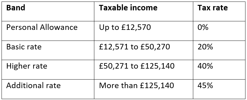 In the 2025/26 tax year, the Income Tax thresholds in England, Wales, and Northern Ireland are: